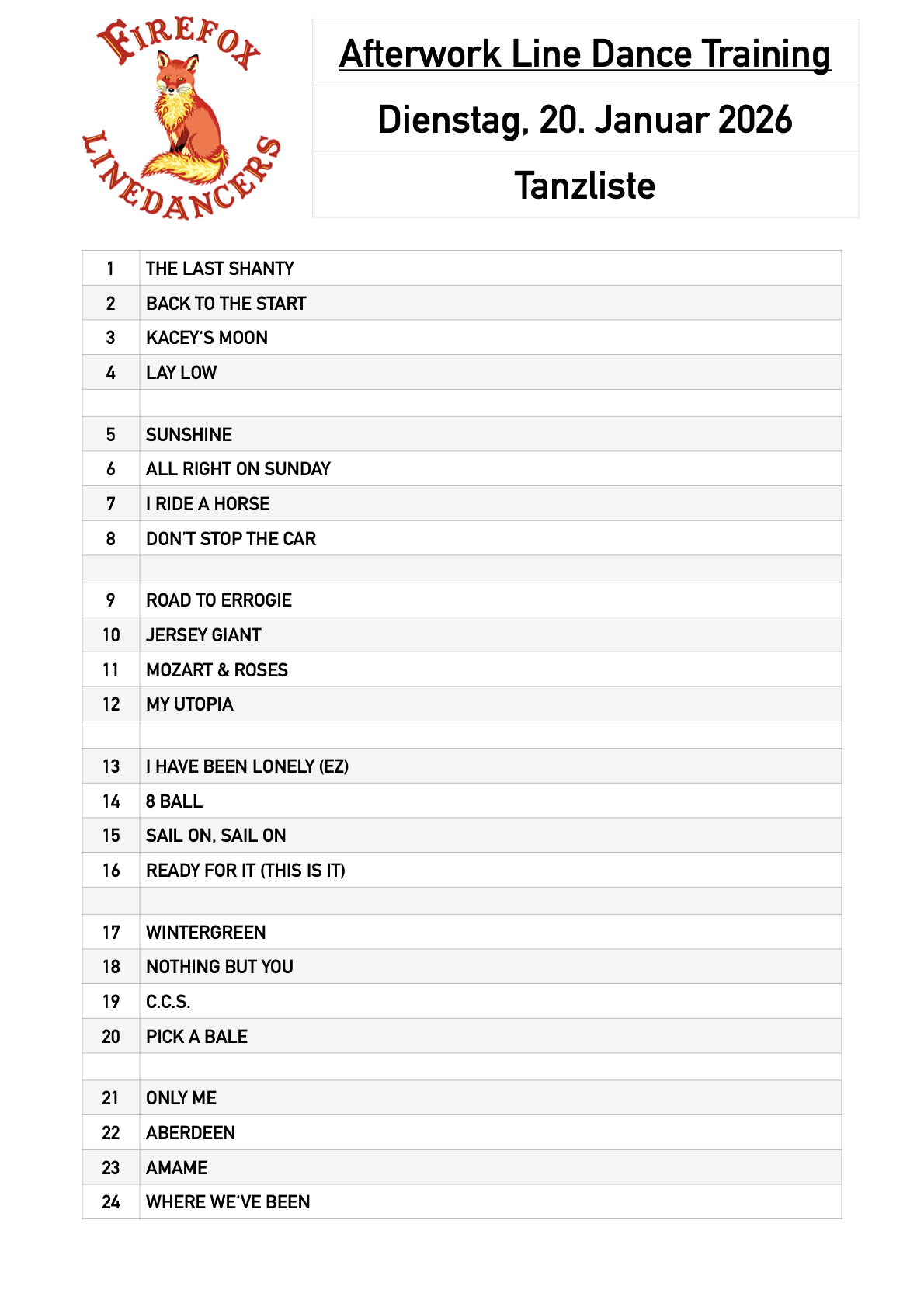 Firefox-Linedancers Leipzig e.V. - Afterwork Training am Dienstag