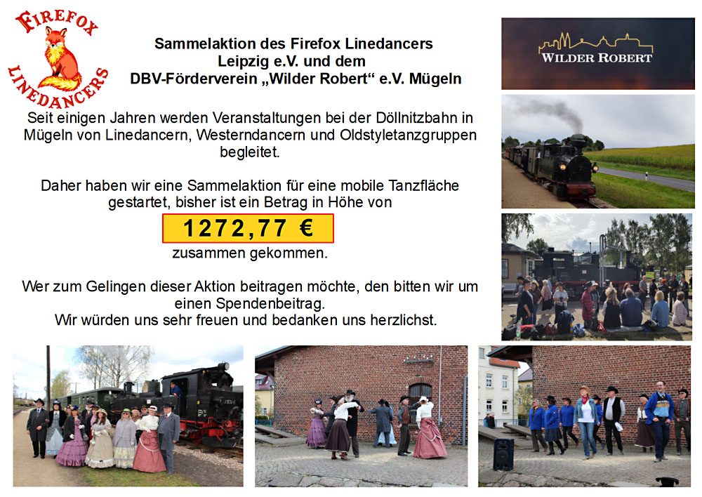 Firefox Linedancers&Friends sammeln für Tanzfläche für die Döllnitzbahn